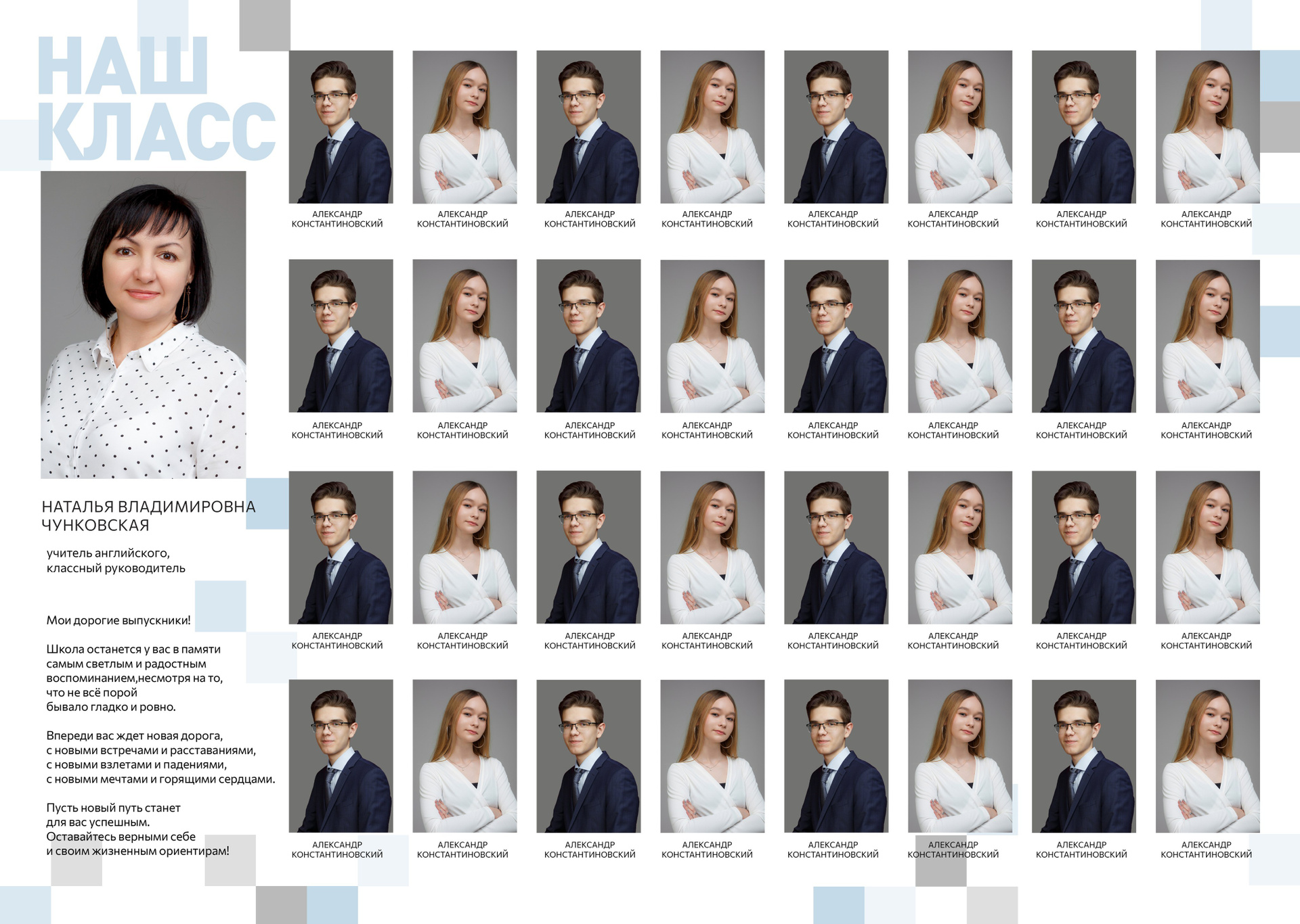 Если вам хочется добавить дополнительное количество фотографий в альбом, вы можете заказать дополнительный разворот — для всего класса -600₽/чел; — дополнительный индивидуальный разворот — 1000₽/чел.